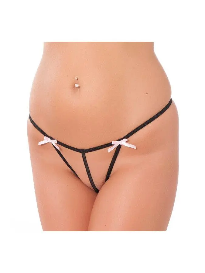 Ontdek de verleidelijke en uitdagende Amorable open string! Met enkele strategisch geplaatste bandjes en twee kleine witte strikjes, zal deze string jouw lichaam in een verleidelijk nieuw licht zetten. Het is een uitstekende keuze voor een romantische avond, of gewoon om jezelf te verwennen met wat extra sexy flair.