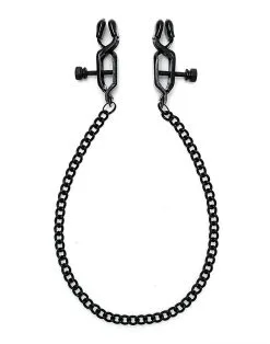 Rimba Bondage Play Verstelbare Tepelklemmen In Cijfer-8 Vorm Met Aandraaischroef En Ketting – Zwart