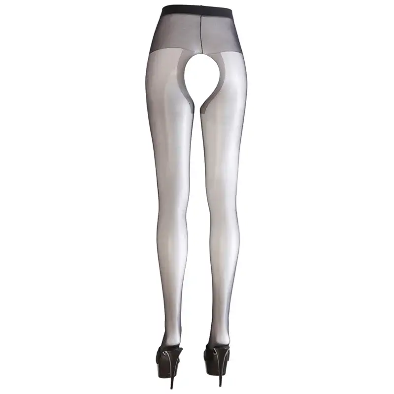 Cottelli Collection – Zwarte Satijnglans Panty Met Open Kruis