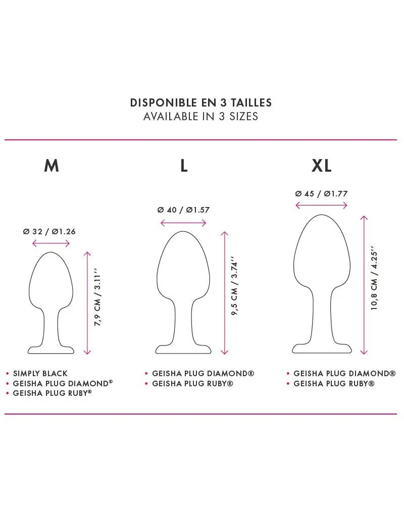 De Geisha Plug is een Buttplug met de beroemde Geisha Ball Technologie. Een losse metalen Kogel zorgt voor ongekende sensaties. Met een wit kristal om te schitteren en te versieren.