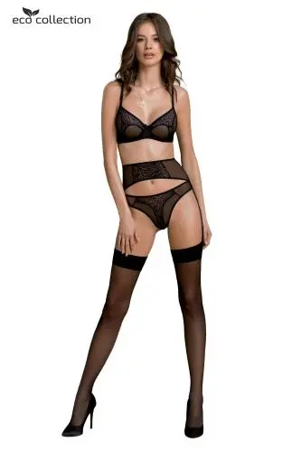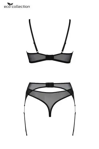 Luxe bh set van kant en mesh. Verfijnde materialen voor een super aangename pasvorm. Verstelbare bandjes. Exclusief kousen.
