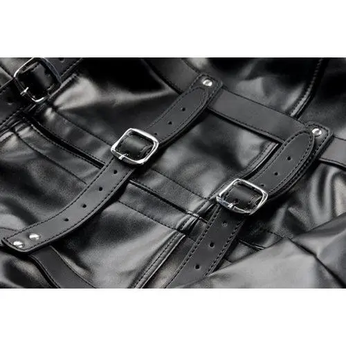 Wil jij zeker weten dat je je sub volledig onder controle kan houden? Dan is deze kunstleren dwangbuis zeker iets voor jou! Als je sub eenmaal in de dwangbuis zit, zal hij of zij geen kant meer op kunnen. De dwangbuis is gemaakt van zwart kunstleer en voelt lekker soepel aan. Hij is aan alle kanten volledig met gespen te verstellen, zodat hij altijd een perfecte pasvorm heeft. Aan de voorkant van de kraag is een metalen O-ring geplaatst. Hier kan een riem, touw of een ander bondagespeeltje aan bevestigd worden.
