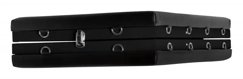 Ingeklapt heeft het bed de volgende afmetingen: 90x60x20 cm. De boeien hebben een lengte van 27 cm en een breedte van 5 cm en zijn verstelbaar. Het gat voor het gezicht is 20×15 cm en het gat voor het kruis is 25×12 cm.