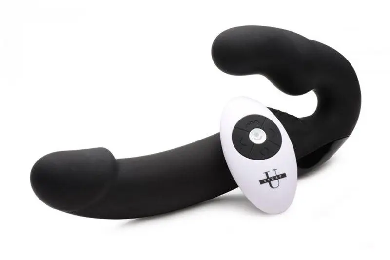 De Urge Strapless Strap-On Vibrator is een voorbind vibrator die gedragen kan worden zonder harnas. Het korte gedeelte van de koppeltoy kan worden ingebracht in de vagina. Door het aanspannen van de bekkenbodemspieren wordt de strap-on vibrator op zijn plaats gehouden. Daarna kan de drager zijn of haar partner anaal of vaginaal penetreren. Dankzij de gebogen top wordt de G-spot tijdens het dragen van de vibrator gestimuleerd.