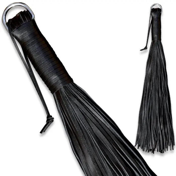 Met deze zweep staat je een bitterzoete straf te wachten? Zwarte zweep gemaakt van leer voor zachte of intense straf. Sterke grip gewikkeld met leer.