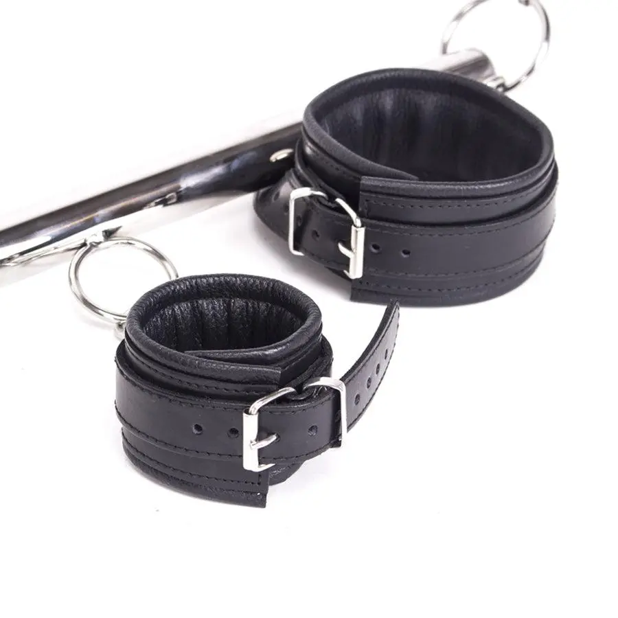 On every ring you’ll find the set of luxurious leather, consistant of handcuffs, anklecuffs and a collar.