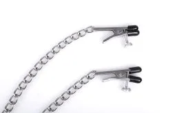 Aan de klemmen is een ketting bevestigd, waar weer andere voorwerpen aan gehangen kunnen worden.