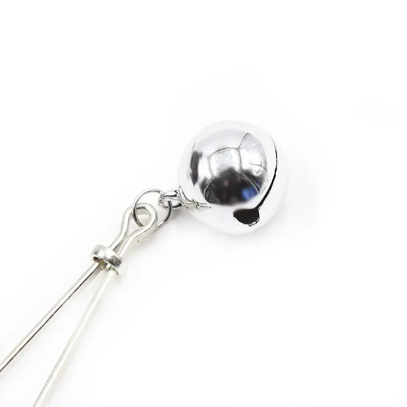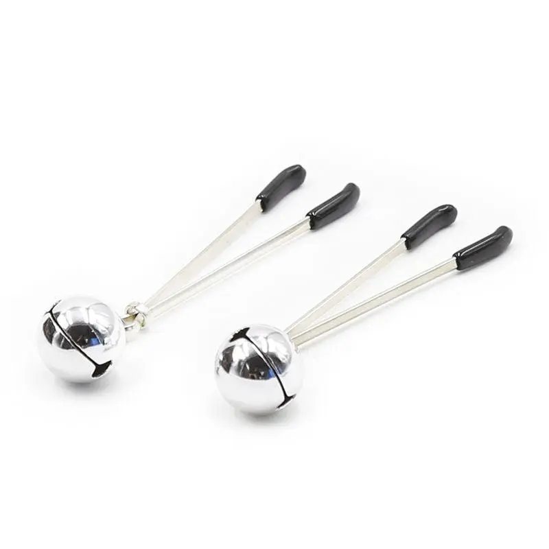 Tepelklemmen met een ronde kleine bel. Pas altijd goed om je harde tepels. Iedereen kan horen waar je bent of dat je komt. Dit is een mooi sieraad voor je rollenspel en je tepels zullen extra hard zijn omdat dit echt een juweeltje is.