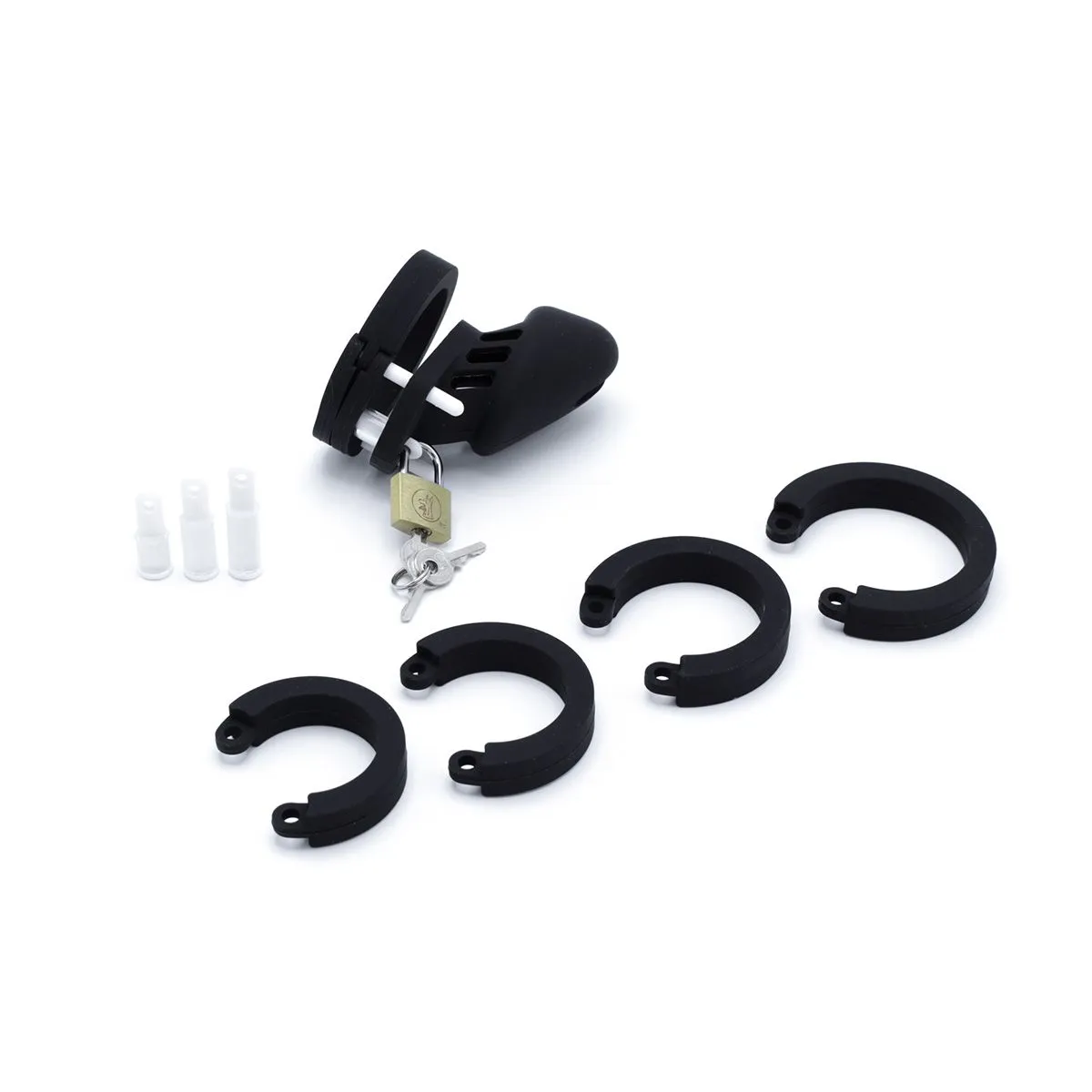 Geschikt voor bijna alle mannen, de kuisheidsgordel wordt geleverd met 5 penisringen in verschillende maten verwisselbare ringen. Daarnaast zijn er 4 witte afstandshouders voor verschillende maten penislengtes.