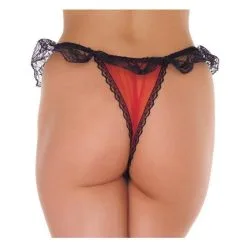 Amorable By Rimba Burlesque Slipje Met Kanten Ruche En Open Kruis – Zwart/Rood