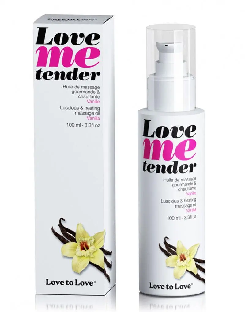 Lekkere, verwarmende massageolie Vanille. Deze lekkere, verwarmende massageolie doet je strelingen extra prikkelend aanvoelen en zal je partner doen rillen van plezier. Masseer, omhels en lik naar hartenlust met de heerijke geuren van Love me Tender!