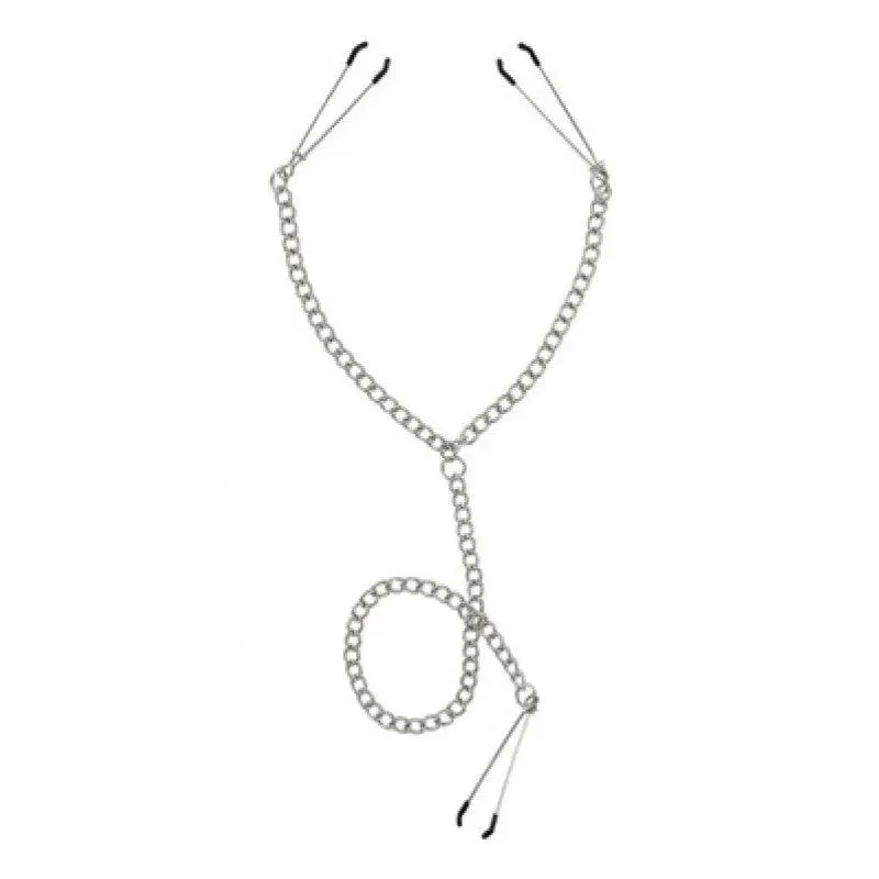 Verbind haar meest gevoelige zones met elkaar. De tepel en clitoris klemset heeft klemmen met vinylbeklede uiteinden, die aan kettingen bevestigd zijn. Een schuifring zorgt voor de gewenste trekkracht. Van juist genoeg om tepel en clitoris te verbinden tot een harde, kwellende en nijpende trekspanning en alle sensaties tussenin. De tepel en clitoris klemset zit goed vast, is handig in gebruik en is bovendien mooi.