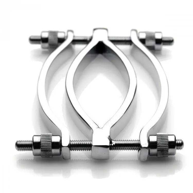 Met deze klem spreid je die schaamlippen open en krijg je toegang tot hun clitoris en vagina. Gebruik de duimschroeven om de buitenkant van de klem te openen en trek de binnenste of buitenste schaamlippen erdoor. Draai de duimschroeven vast om het apparaat te bevestigen, zodat je partner met pijn en plezier vastzit!