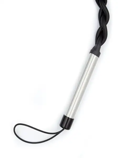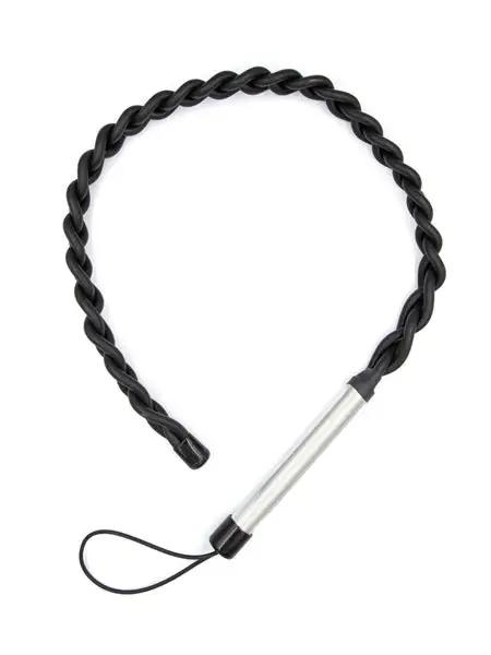 De Rubber Pleasure Whip met aluminium handvat is een must-have voor iedereen die het BDSM-spel serieus neemt.Â