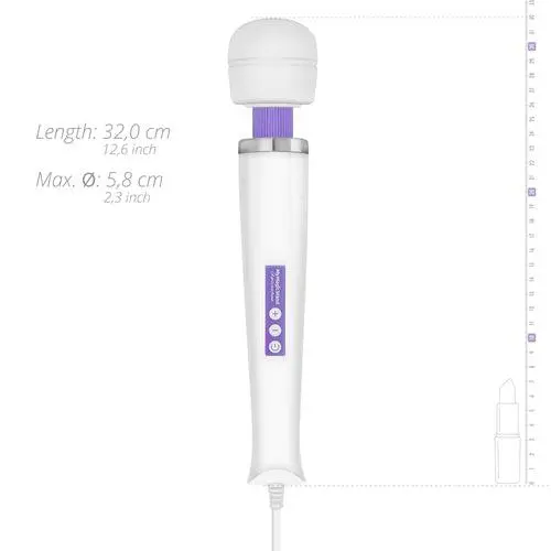 De MyMagicWand is voorzien van een extra lang snoer met een vaste stekker. Hierdoor levert de wand vibrator ongekend diepe vibraties. Daarnaast zijn er nooit problemen met een lege accu, lege batterijen of een afstandsbediening die niet optimaal werkt. Door simpelweg de stekker in het stopcontact te pluggen, is deze krachtige vibrator helemaal klaar voor actie. Tijd speelt hierbij geen rol. De MyMagicWand kan eindeloos doorgaan en hoeft niet te worden opgeladen.