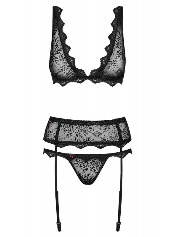 Obsessive – Emperita 3-Delig Jarretel Setje – Zwart