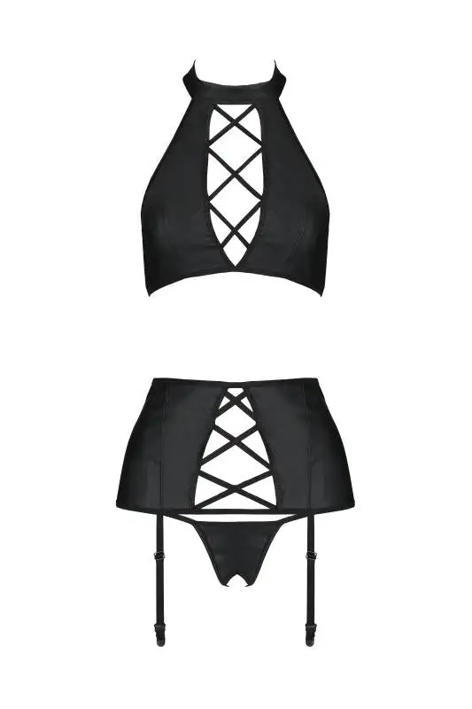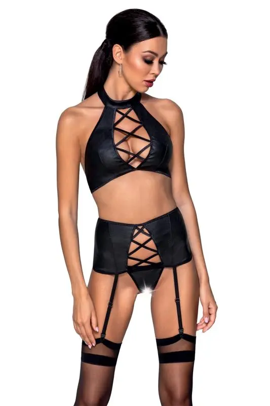 Passion – 3-delige Lingerieset Van Imitatieleer NANCY – Zwart