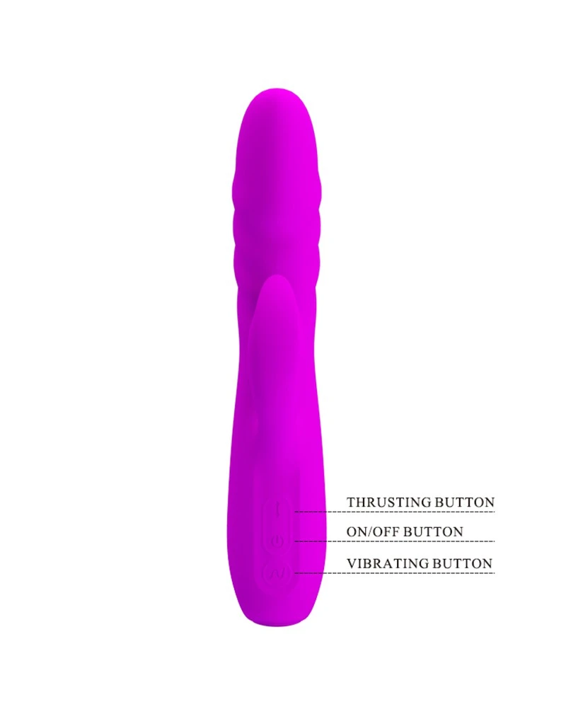 Rabbit vibrator Melanie combineert de stimulatie van zowel de g-spot als de clitoris met 3 kleine nopjes op de kleine schacht van de vibrator. De rabbit vibrator is uitgerust met 12 vibratiestanden en 4 stootfuncties.