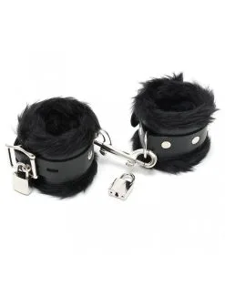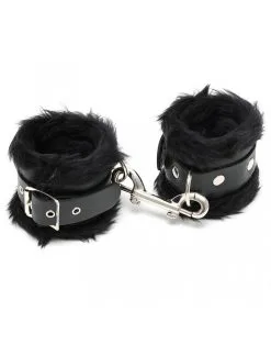 Rimba Bondage Play Handboeien Leer Gevoerd Met Bont – Zwart