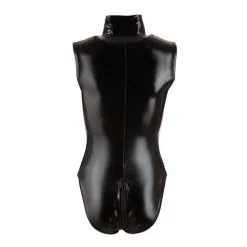 Cottelli Collection Wetlook Catsuit Met Lange Mouwen En Rits – Zwart