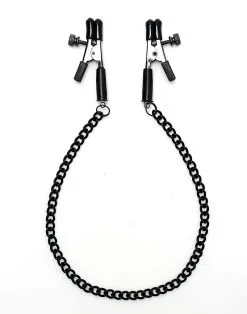 Rimba Bondage Play Knijp Tepelklemmen Met Aandraaischroef En Ketting – Zwart
