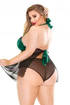 Curve – Evelyn Elise Kanten Babydoll Met Sexy String – Grote Maten/Plus Size – Lichblauw