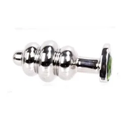 Kiotos Steel Buttplug Geribbeld RVS Met Diamant In Hartvorm – Groen