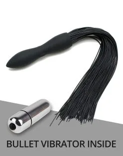 Rimba Latex Play Siliconen Flogger Zweep Met Vibrerende Dildo