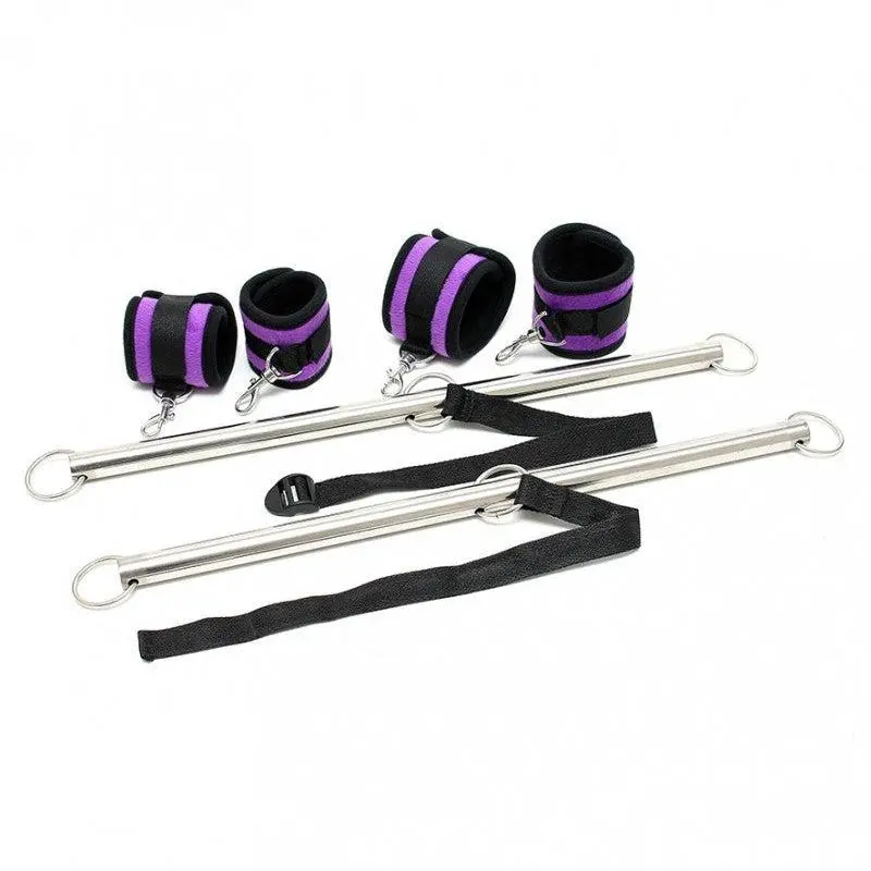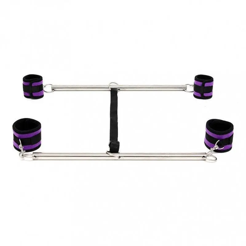 Rimba Bondage Play BDSM Dubbele Spreader Bar Met Zachte Boeien – Paars/Zwart