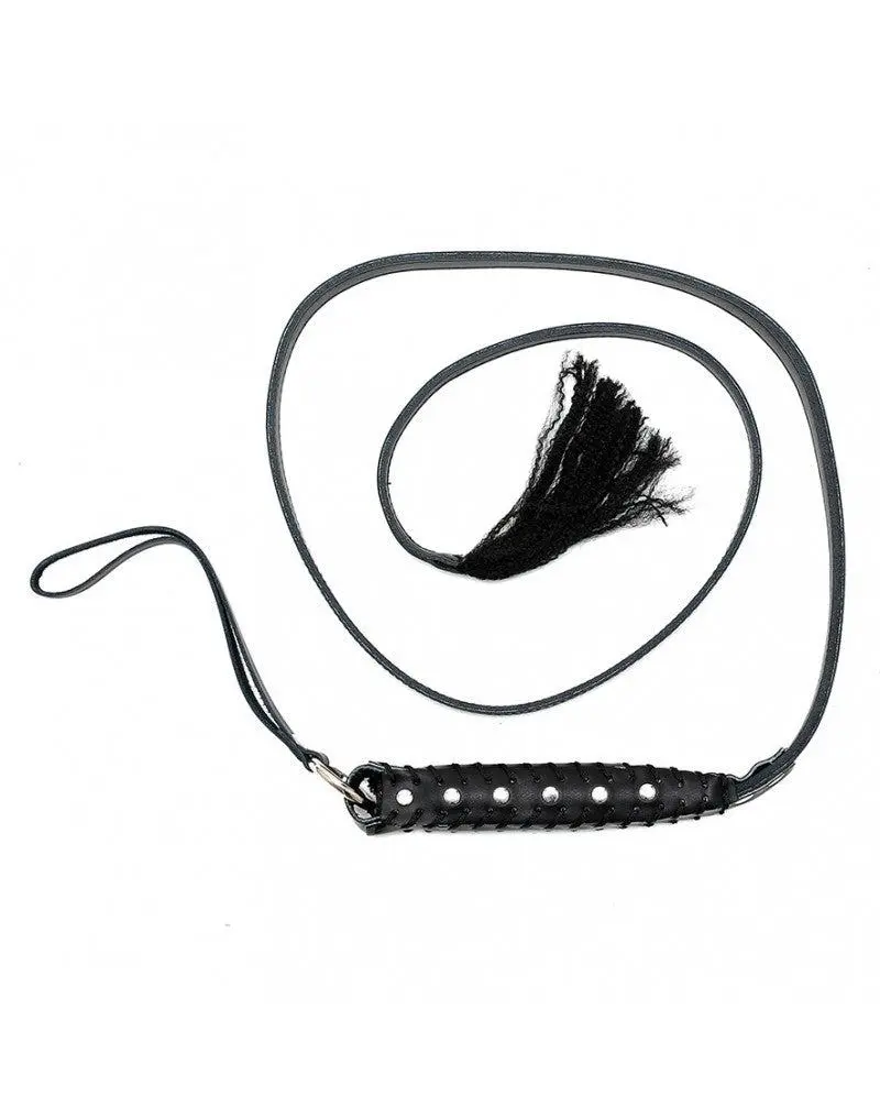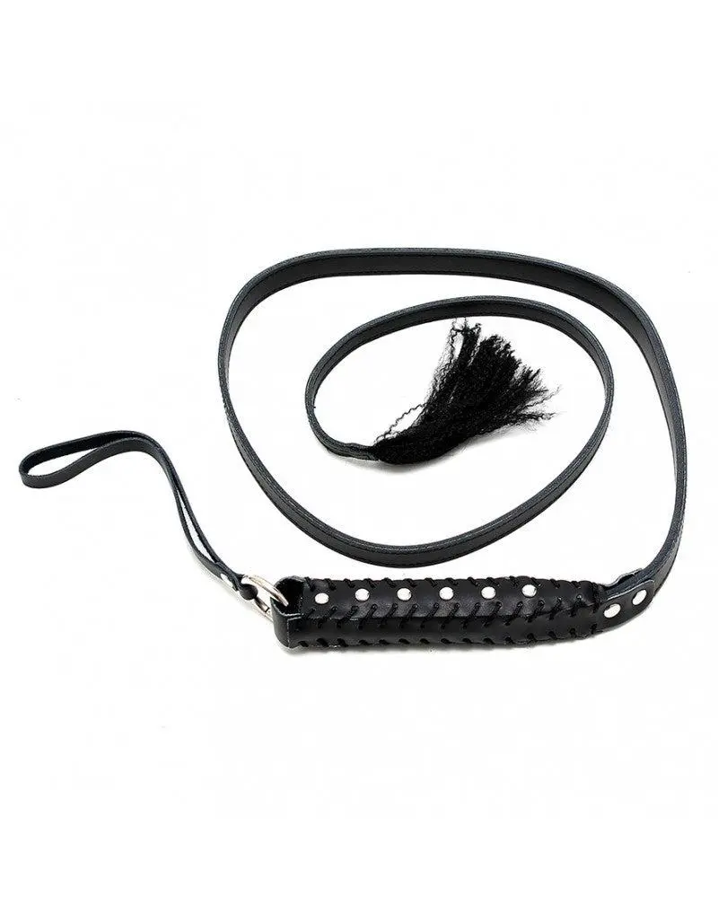 Rimba Bondage Play – Broekriem-zweep Met Lange Flexibele Strook En Handvat – Zwart