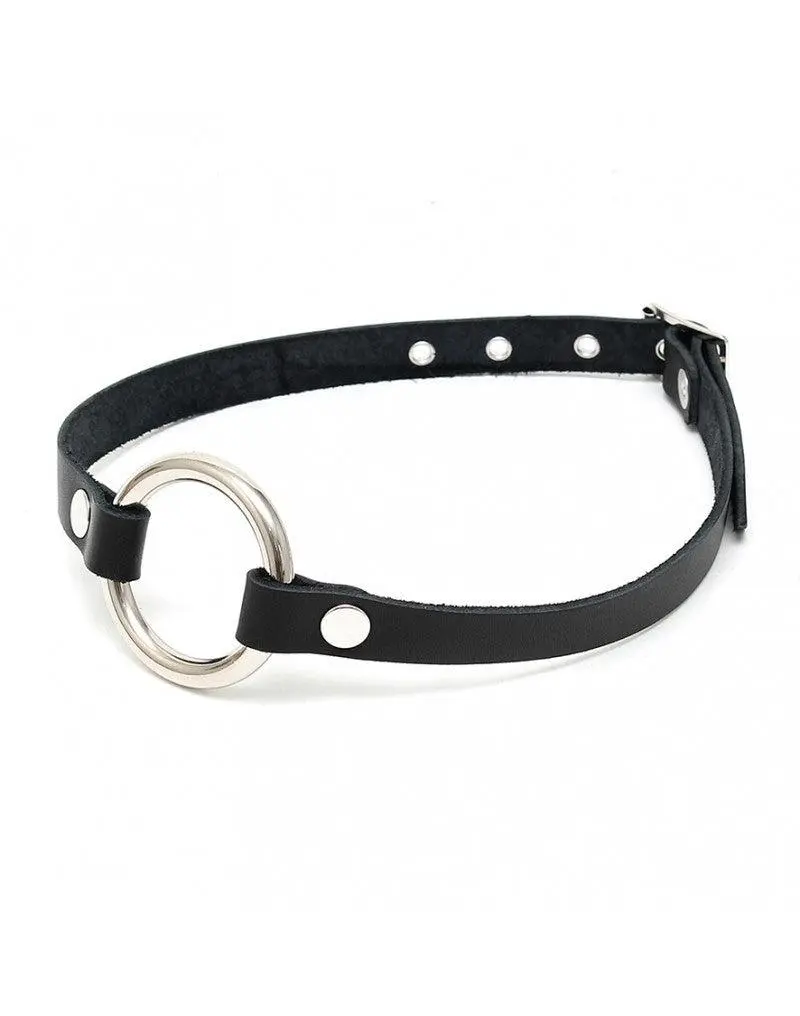 Eenvoudig en doeltreffend. Deze gag met metalen ring zorgt ervoor dat mondjes gedwongen open en gewillig blijven. Verstelbaar leren riempje. Nederlands fabrikaat.