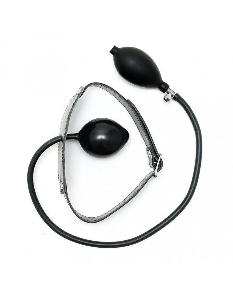 Mondknevel met opblaas ballon en pomp voor mooie bolle wangetjes. De verstelbare lederen band zorgt ervoor dat de gag goed op z’n plaats blijft zitten. Met lederen riem verstelbaar met gesp