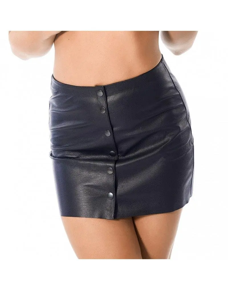 Rimba Bondage Play Lederen Minirokje Met Drukknopen Aan De Voorzijde