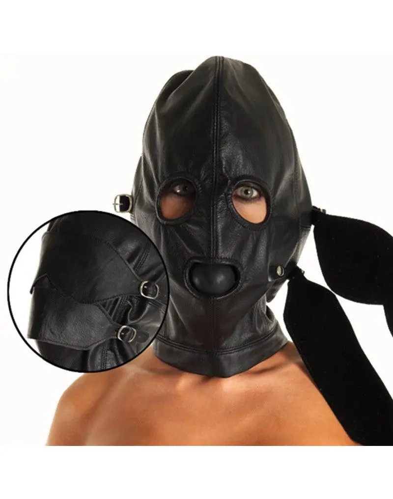 Ga voor totale duisternis met deze hood van de beste kwaliteit. Voorzien van een afneembare blinddoek en een ball gag. Hood en blinddoek vervaardigd van nappa leer, de ball gag van siliconen. Voorzien van gespen voor optimale verstelbaarheid plus rits en veter aan de achterkant. Een prachtig staaltje werk van het nederlandse merk Rimba.