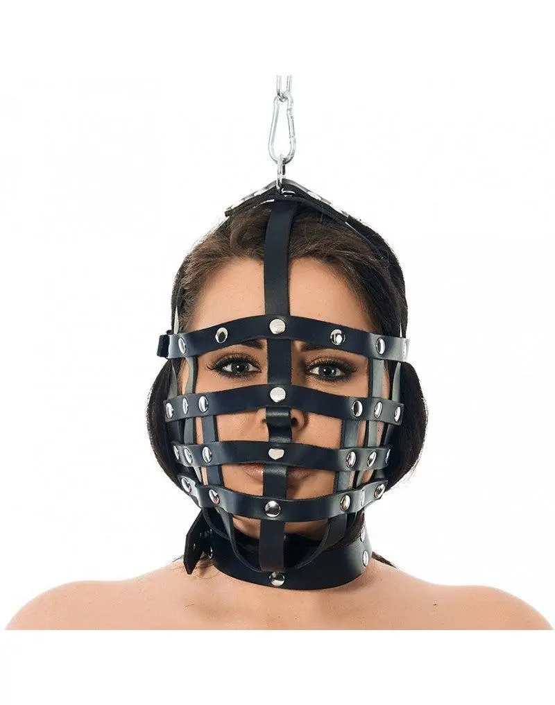 Heerlijk zwart lederen riemenmasker met ophangring aan de bovenkant. Het riemenmasker is zeer goed verstelbaar met gespen en zit als gegoten om je hoofd. Dit is het masker voor de echte liefhebber van bondage.