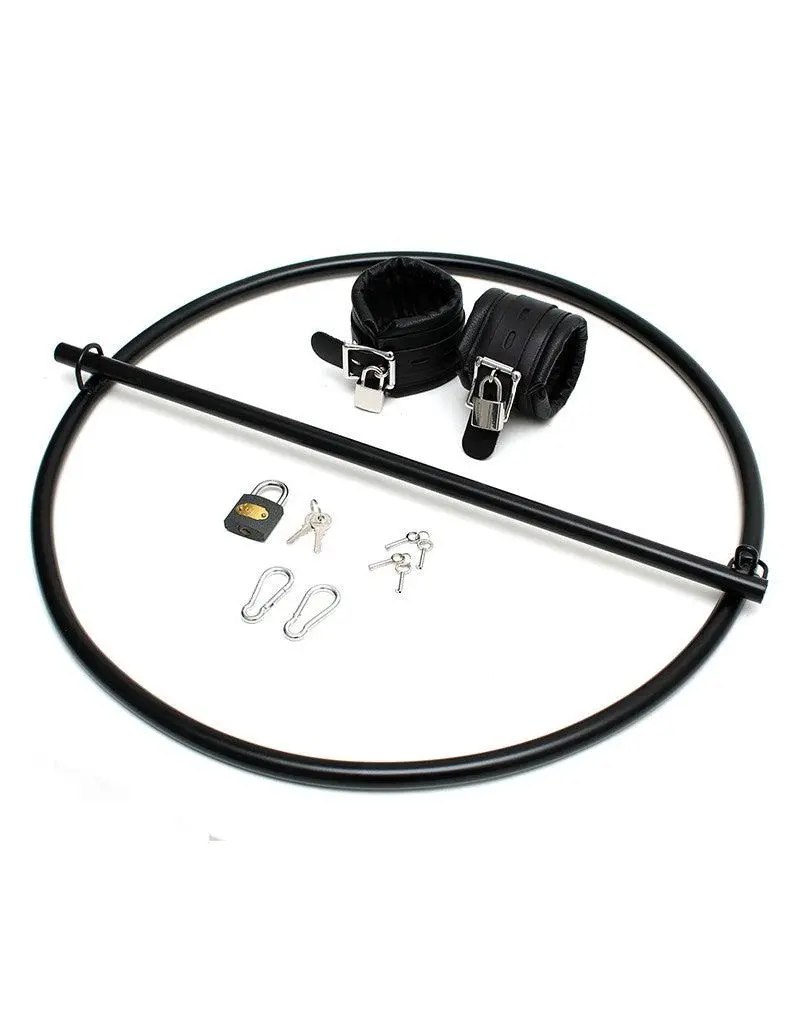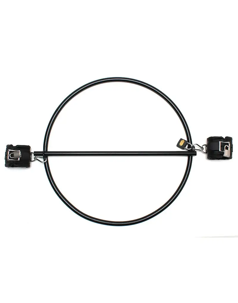 Deze restraint ring is perfect om een onderdanige op zijn plaats te houden. Stap in deze ring en laat je opsluiten door je partner. Het sterke hangslot en de handboeien zorgen ervoor dat ontsnappen onmogelijk wordt! De Restraint Ring is een ideaal product voor beginners die willen experimenteren met BDSM, maar ook voor de ervaren BDSM-liefhebbers. Dit speeltje is verstelbaar, heeft een reservesleutel en is makkelijk in gebruik.