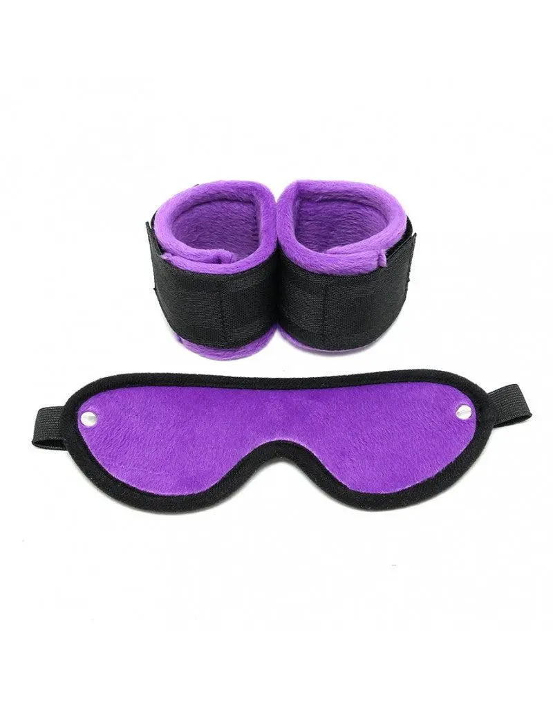 Soft Bondage handboeien met klittenband sluiting en masker. Ook verkrijgbaar in zwart (7001} Materiaal: 100% Nylon Kleur: Paars – Zwart