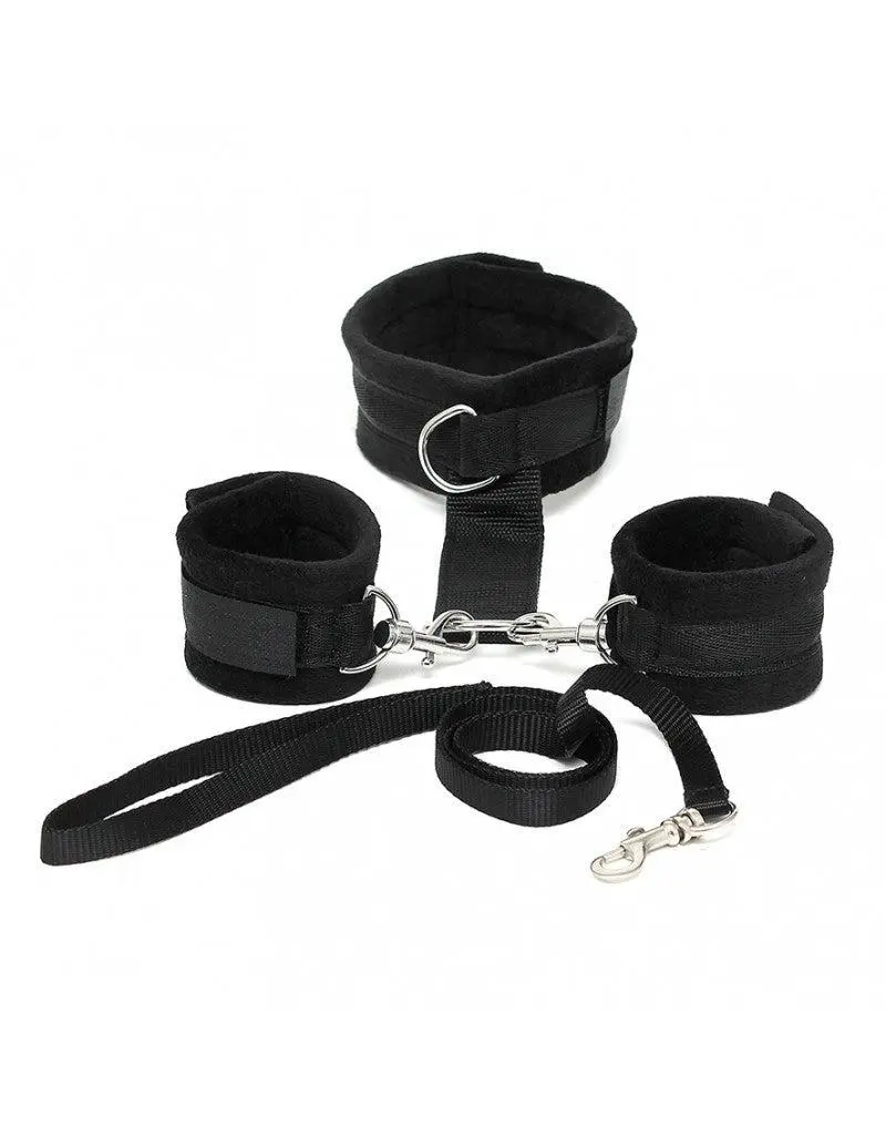 Rimba Bondage Play Soft Bondage Collar Met Handboeien En Leiband – Zwart