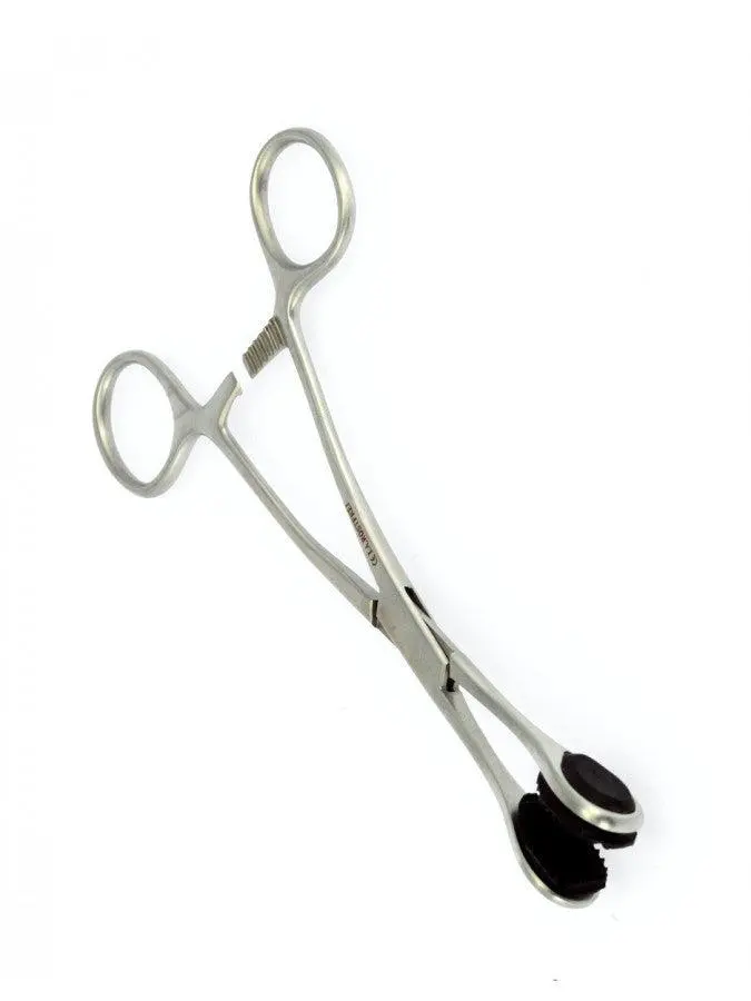 Medische piercingtang met uitneembare rubber doppen. Ook te gebruiken als (tepel)klem.