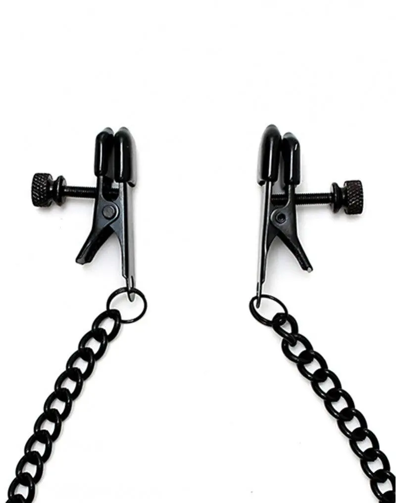 Rimba Bondage Play Tepelklemmen Met Aandraaischroef En Ketting – Zwart