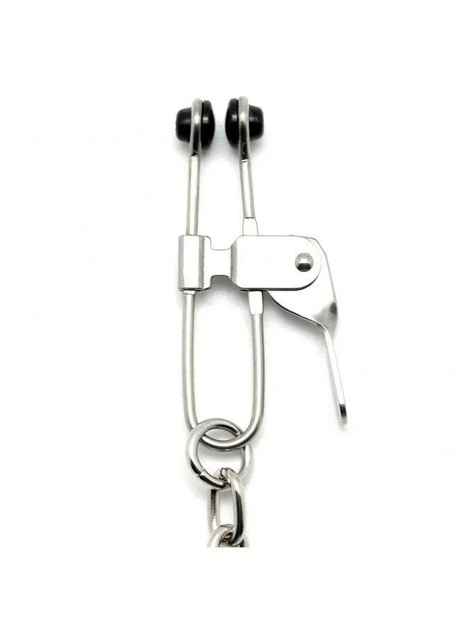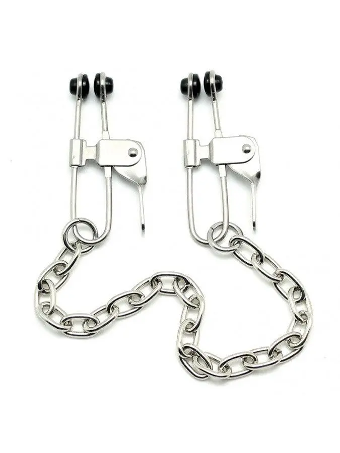 Tepelklemmen die je vastzet met een hefboom-klemmetje. Zeer eenvoudig in gebruik, hendeltje naar beneden en de klem gaat dicht, hendeltje naar boven en de klem gaat open. Je kunt deze klem ook half dicht (of half open, als je een optimist bent) laten staan als je lief wilt zijn voor de tepel in kwestie.