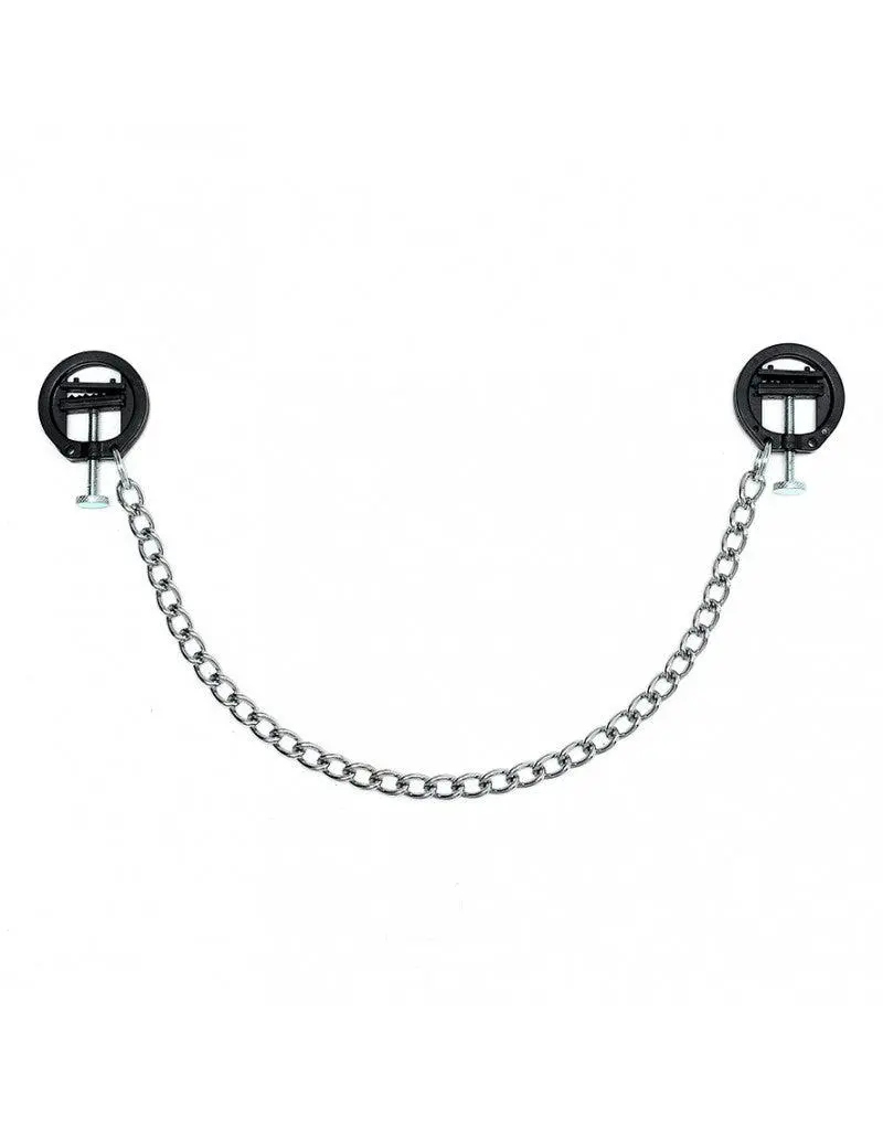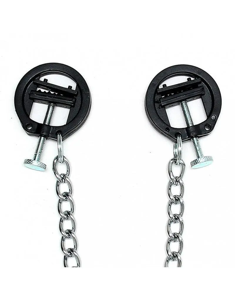 Rimba Bondage Play – Zwarte Ronde Tepelklemmen Met Schroef En Ketting – Verstelbaar