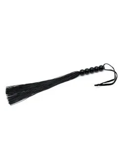 Klein zweepje met zwarte siliconen draadsliertjes. Ideaal om een spel mee te beginnen. Laat je speelpartner geblinddoekt de sensatie ervaren.