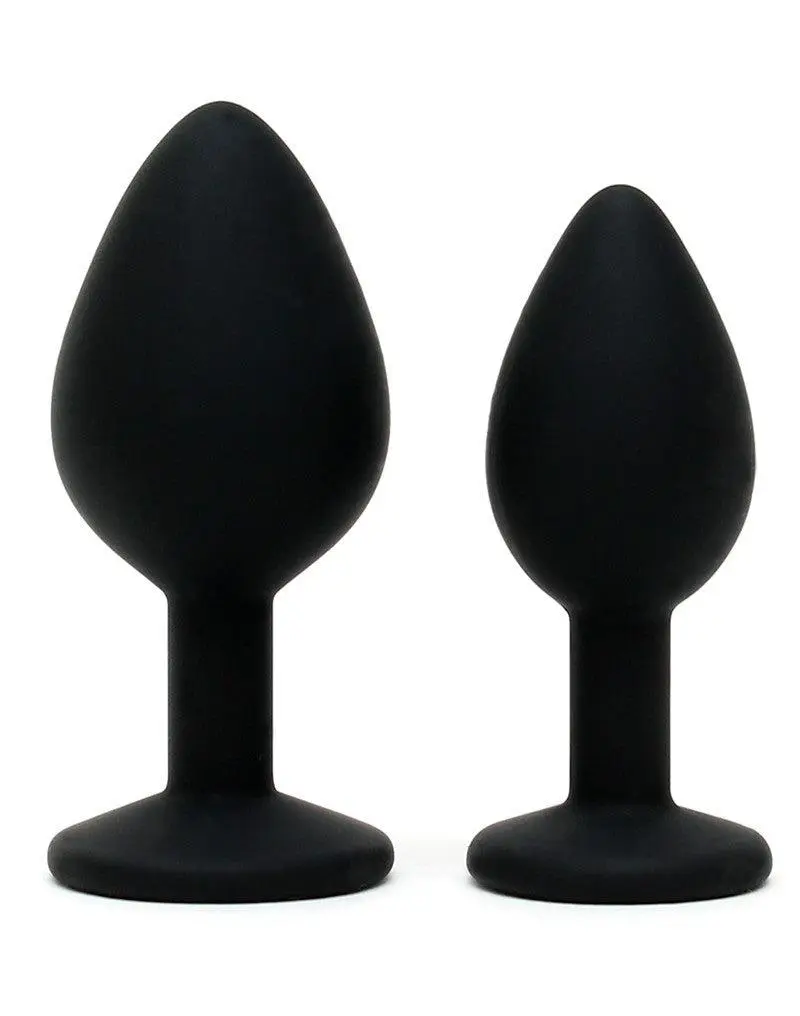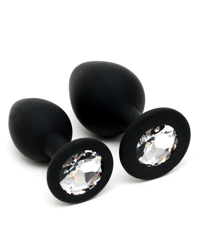 Twee siliconen buttplugs met transparant kristal.