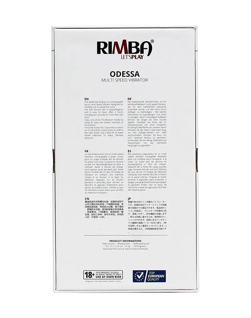 Deze spetterende rog is een oplaadbare vibrator die speciaal is ontworpen om op verschillende manieren te gebruiken maar vooral om de vulva te plezieren. De zachte siliconenhuid is hypoallergeen en is gemakkelijk schoon te maken. Na 2 uur opladen kun je meer dan een uur spelen. Geniet van een van de 10 vibratiemodi met behulp van een eenvoudige interface met één knop aan de onderzijde. Druk 3 seconden lang op deze knop om in of uit te schakelen en druk kort om naar de volgende modus te gaan. Gebruik een beetje glijmiddel op waterbasis voor ultiem plezier. De Odessa is waterdicht en gemakkelijk schoon te maken, gebruik hiervoor onze toycleaner.