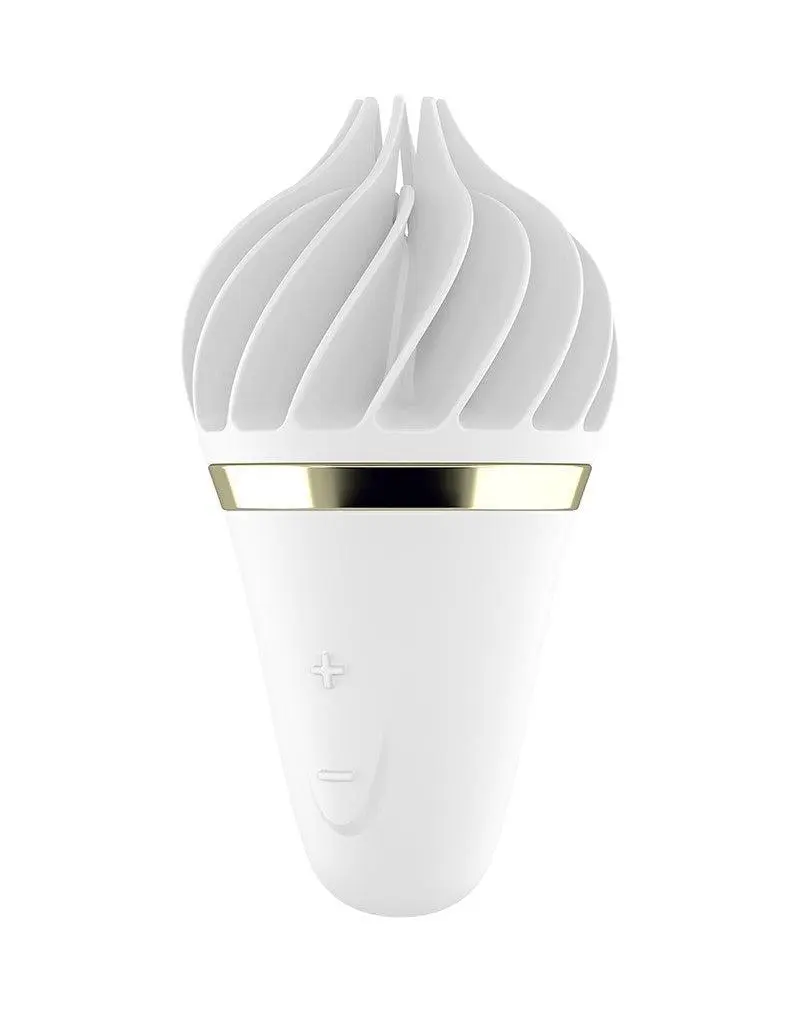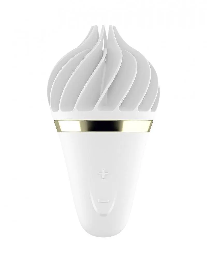 Kleurrijk, lekker en brutaal – dat is de Satisfyer Sweet Temptation! Deze leuke toy zal je als een koele ijscoupe op een warme zomerdag bevredigen. Met zijn unieke ijswafelontwerp en voldoende rotatievermogen is de medische siliconen oplegvibrator niet alleen het visuele hoogtepunt van uw speelgoedcollectie!