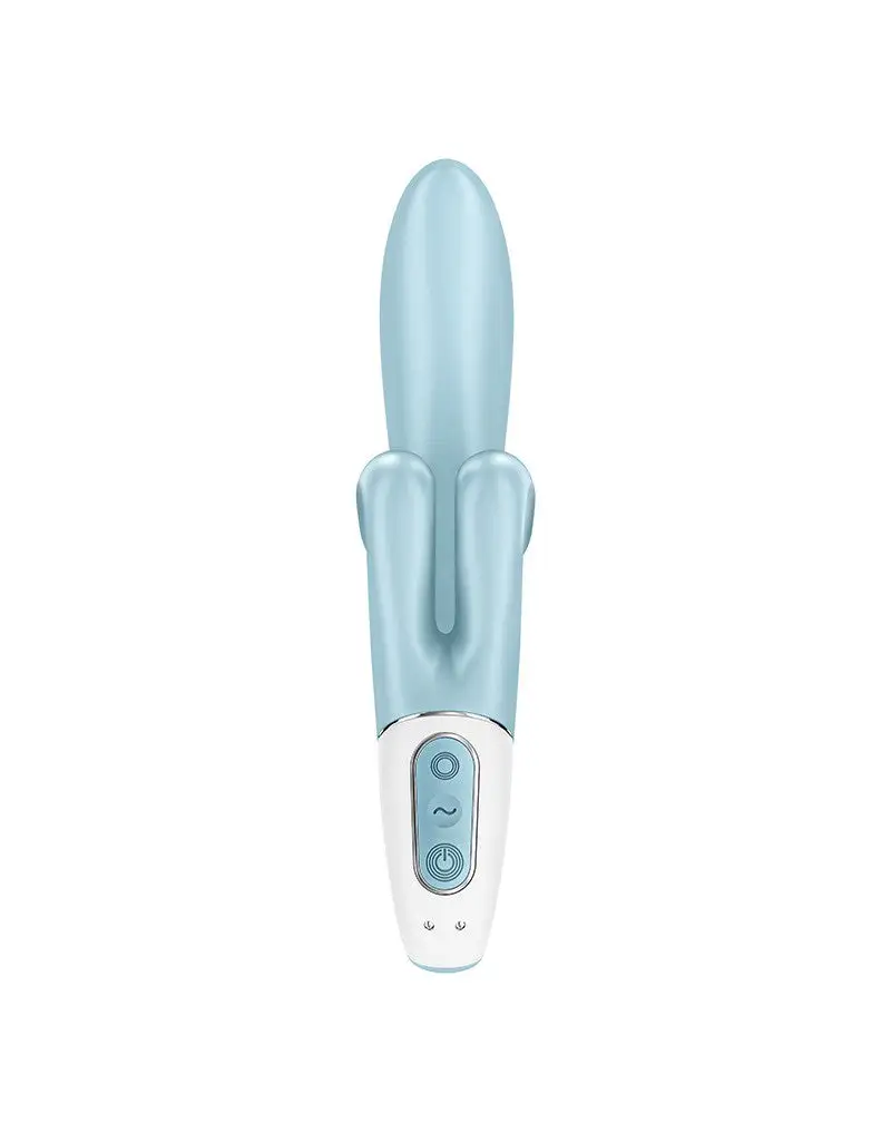 Hier is Satisfyer’s Touch Me, een unieke en zeer flexibele rabbit vibrator. Het opvallende kenmerk is de gespleten clitorisstimulator, bestaande uit twee gebogen armen die boven de clitoris en de schaamlippen reiken. Dit zorgt voor een breder scala aan stimulatie dan traditionele rabbit vibrators. Uitgerust met drie krachtige motoren, één in de grote schacht voor g-spot stimulatie en twee in de armen voor externe stimulatie, biedt Touch Me een intense ervaring. De schacht en armen zijn afzonderlijk aan te sturen en bieden keuze uit 12 vibratieprogramma’s. De handgreep met een intuïtief bedieningspaneel zorgt voor een gemakkelijke bediening en bediening.