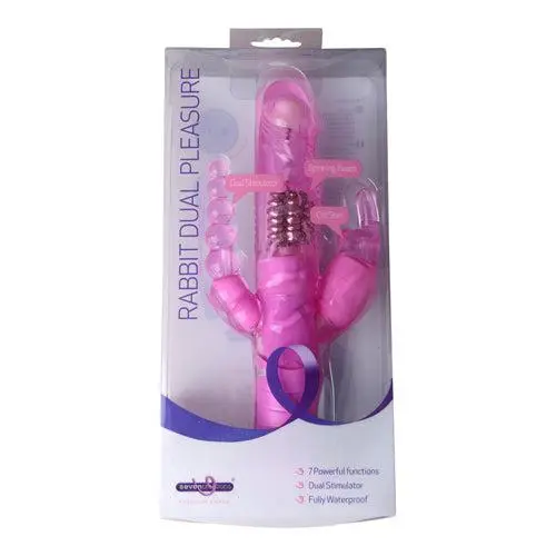 Het plezier dat deze vibrator jou geeft zul je nooit ergens anders ervaren! Je wordt niet op één plekje gestimuleerd, maar op maar liefst 3 verschillende plekjes. Terwijl de schacht jou diep van binnen penetreert met zijn roterende parels, doen het clit konijntje en de anale kralen het andere werk met hun krachtige vibraties. Je kunt de schacht in één richting laten roteren, terwijl de externe stimulators voorzien zijn van een krachtige bullet met 7 verschillende vibratie patronen. De vibrator is volledig waterdicht, dus ook een ideaal speeltje voor waterpret onder de douche!