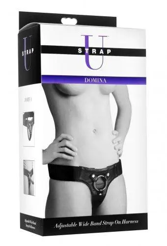 Indulge in your strap on fantasies with this fully adjustable and comfortable dildo harness from Strap U. With a wide band supportive harness that adjusts via two Velcro straps, you can insert your favorite flared base dildo into the O ring. Just snap it into place and you are ready to start penetrating your partner with the dildo of your choice! The waistband offers total adjustability, and will accommodate most sizes. The back supporting strap offers a more form-fitting design that hugs the contours of your body, allowing you to move freely. The snap-in design allows you to change out the included ring with one of your own, if you desire a different size or material. Most cock rings will work perfectly! This harness system is easy to maintain, making this an ideal choice for all your strap on adventures.