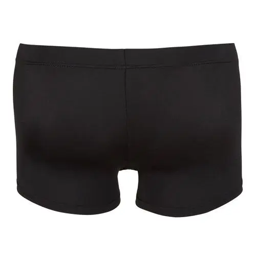 Deze zwarte heren boxer is voorzien van openingen in de voorkant waar de penis en balzak doorheen kunnen. De boxer is gemaakt van glad, zacht materiaal dat een klein beetje glanst voor een erotische uitstraling. Het materiaal voelt fijn aan en is comfortabel om te dragen. De voorkant van de boxer is rekbaar en geeft een ondersteunende en liftende werking waardoor de mannelijke vormen het middelpunt van de aandacht zullen zijn.